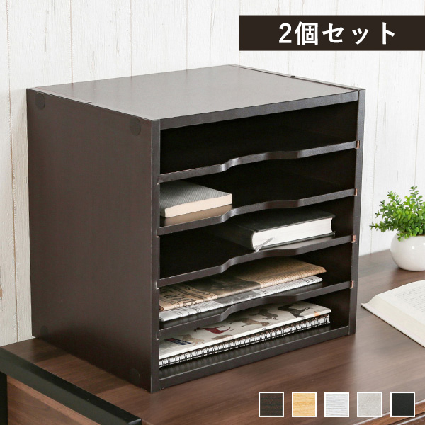 2個セット 収納棚 書類棚 ラック キューブボックス A4サイズ 書類ケース 5段 マガジンラック 本棚 高さ変更 スタッキング 連結可能