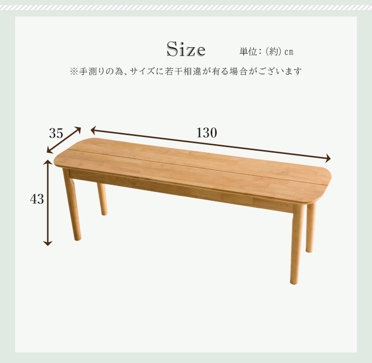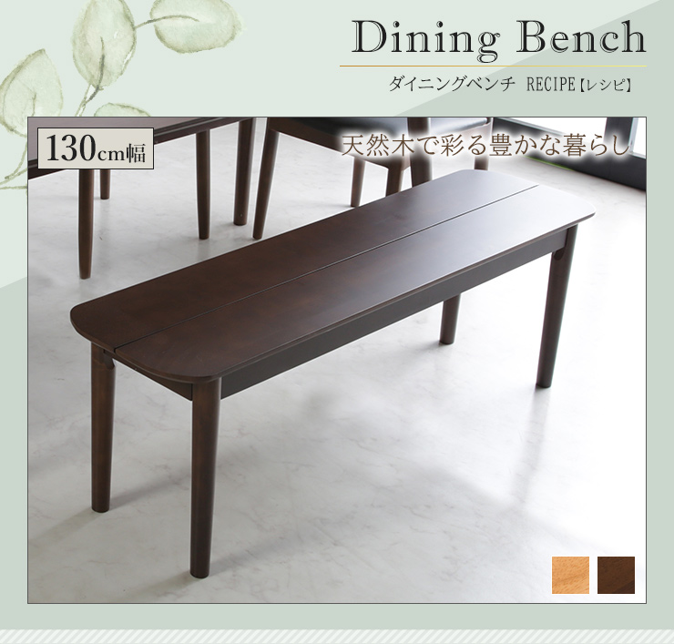 ダイニングベンチ チェア ベンチ 幅130cm 木製 木目調 無垢 2人掛け 角丸加工 あたたかみ 北欧風 シンプル 単品