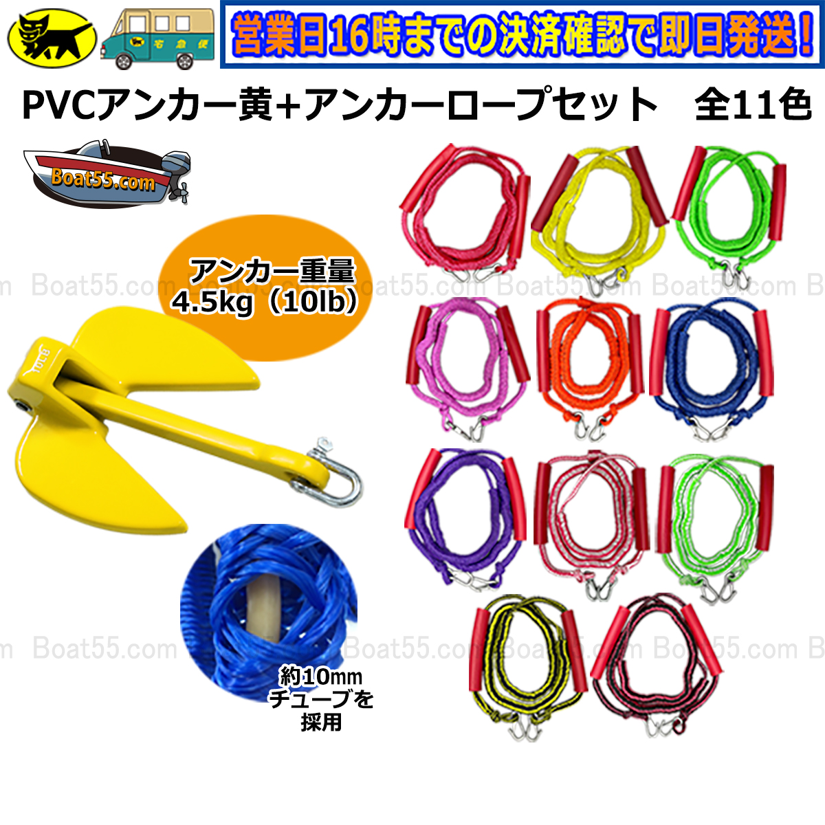 Boat55 レビュー投稿でプレゼント PVCアンカー 黄+アンカーロープ セット 全11色 太ゴムチューブ ジェットスキー シャックル付 ダンフォース 送料無料 沖縄除