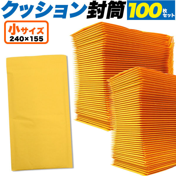 商品発送に最適! クッション封筒 小サイズ100枚セット小さな商品の発送に最適なクッション封筒!ネコポス・クロネコDM便・ゆうメールなど、各種メール便サイズにも対応しています。封筒の中にクッション素材付きなので、梱包の手間を省け、安心して発送できます。また、封かんシール付きなので梱包作業が簡単です。お得な100枚セットです!製品仕様外形サイズ(約)縦240×横155 折り返し45mm内側サイズ(約)縦235×横135 クッション部素材ポリエチレンセット数100枚注意※荷物の詰め過ぎにより封筒が膨らむと、メール便等の対応サイズを超える場合もございますのでご注意下さい。詳細は各運送会社にご確認下さい。