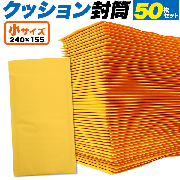 商品発送に最適! クッション封筒 小サイズ50枚セット小さな商品の発送に最適なクッション封筒!ネコポス・クロネコDM便・ゆうメールなど、各種メール便サイズにも対応しています。封筒の中にクッション素材付きなので、梱包の手間を省け、安心して発送できます。また、封かんシール付きなので梱包作業が簡単です。お得な50枚セットです!製品仕様外形サイズ(約)縦240×横155 折り返し45mm内側サイズ(約)縦235×横135 クッション部素材ポリエチレンセット数50枚注意※荷物の詰め過ぎにより封筒が膨らむと、メール便等の対応サイズを超える場合もございますのでご注意下さい。詳細は各運送会社にご確認下さい。