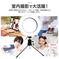室内での撮影に欠かせないLEDリングライト ミニ三脚タイプ■室内撮影で大活躍!ミニ三脚タイプのLEDリングライト室内の撮影では被写体は暗く写りがち。そんな時はリングライトを使用して被写体を明るく照らすことできます。自撮り撮影はもちろん、リモート会議・商品撮影など様々なシーンで活躍します。■3種類の色温度切替が可能!ライトの色温度は昼光色・昼白色・電球色の3種類あり、目的に応じた色温度に設定できます。■10段階調光が可能!光量は10段階で調節ができ便利です。■消灯直前の設定が記憶されるメモリー機能!毎回明るさを調節するのが面倒…でも大丈夫!消灯直前の色温度・明るさが記憶されるメモリー機能付きです。※消灯後、電源からケーブルを取り外した場合は解除されます。■角度調節しやすいボールジョイント!お好みの位置に動かして固定ネジを締めるだけ!簡単に調節ができます。■便利なUSB給電式!USB-ACアダプタがあればコンセントから使用することもできます。ケーブルの長さは1.8mで、USBポートが遠い場合でも安心です。※画像の色調はご使用のモニターの機種や設定により実際の商品と異なる場合があります。製品仕様セット内容リングライト/雲台/ミニ三脚サイズ(約)リングライト直径:16cm組立時:縦31×横20×奥行き18cmケーブル長さ:1.8m重さ(約)295g注意※海外からの輸入商品となります。多少の傷やゆがみはご了承ください。