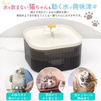 動く水に猫ちゃんも興味津々!ペット用 循環式 自動給水器水を飲まない猫ちゃんも動く水で興味津々!循環式自動給水器です。絶えず流れている水で興味を誘い、普段あまり水を飲もうとしない猫ちゃんにおすすめです。中央から水が吹き出る湧き水タイプと噴水のように水が流れる噴水タイプの2way仕様!猫ちゃんの好みに合わせて使い分けが可能です。4層フィルターで猫ちゃんの毛やホコリなどを除去し、不純物を取り除きます。モーター音が気にならない静音設計になっていて、飼い主さんも猫ちゃんも快適!細かいパーツも取り外すことができてお手入れもしやすくなっています。汚れてもすぐに洗える手軽さで、いつでも清潔に使用ができます。製品仕様 サイズ(約)本体:12×21×21cm容量(約)2.5L 重さ(約)630g セット内容給水タンク/給水ポンプ/上蓋/ろ過フィルター/フラワーアタッチメント/モーター掃除用ブラシ/ピンセット素材ABS入力DC 5V-1A注意※輸入品のため、多少の傷や歪み等はご了承の上でお買い求めください。※ご使用の前に一度洗い、試運転してからご使用下さい。※定期的に本製品の状態を確認してください。破損等がある場合は使用しないでください。※変形や破損の原因になるため、自動食洗器や食器乾燥機等は使用しないでください。※本商品にはON/OFFスイッチはなく、電源につなぐだけで起動します。必ず本体に水を入れた状態で電源とつないでください。空焚きはモーターの故障の原因となります。※USBケーブルを接続する際は、濡れた手のまま触らないで下さい。※給水ポンプを掃除する際は必ず電源を切ってからお手入れしてください。※USB-ACアダプタは付属しません。※お水は毎日の交換を推奨します。