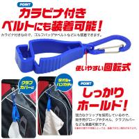 ゴルフグローブなどを簡単装着!カラビナ付き クリップ式グローブホルダーラウンド中に汗や雨で濡れたグローブを簡単に装着できるゴルフグローブホルダー。クリップ式なので挟むだけで簡単に装着できます。カラビナ付きなので、ゴルフバッグやベルトなどにも装着できます。強力なクリップを採用しているので、両手用グローブやタオル、クラブカバーなども装着可能です。軍手・作業用手袋・サイクリンググローブ、スノーボードなどのグローブや、アウトドアや登山、釣りで帽子やタオルを装着など、幅広いシーンで活躍します。製品仕様サイズ(約)縦123×横25mm重量(約)16gカラーブルー、ブラック、レッド、オレンジ注意※グローブ等は付属しません。※素材の厚さや材質によっては、装着できない場合があります。