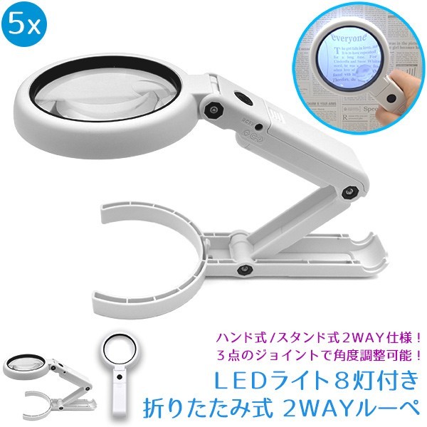 折りたたみ式 2WAY ルーペ LED8灯 ハンド式/スタンド式 5倍/11倍