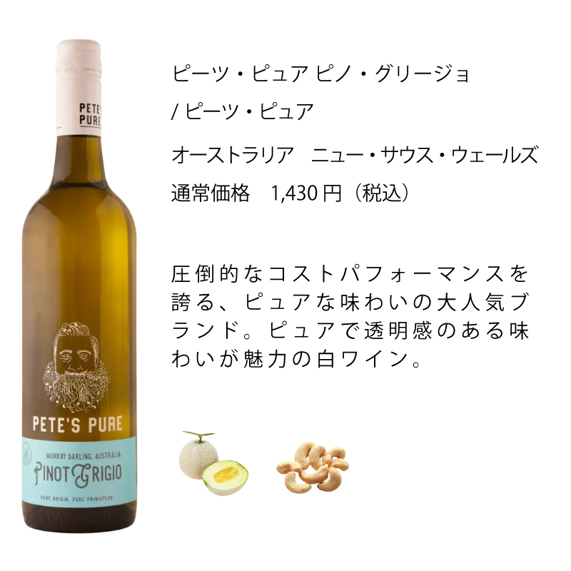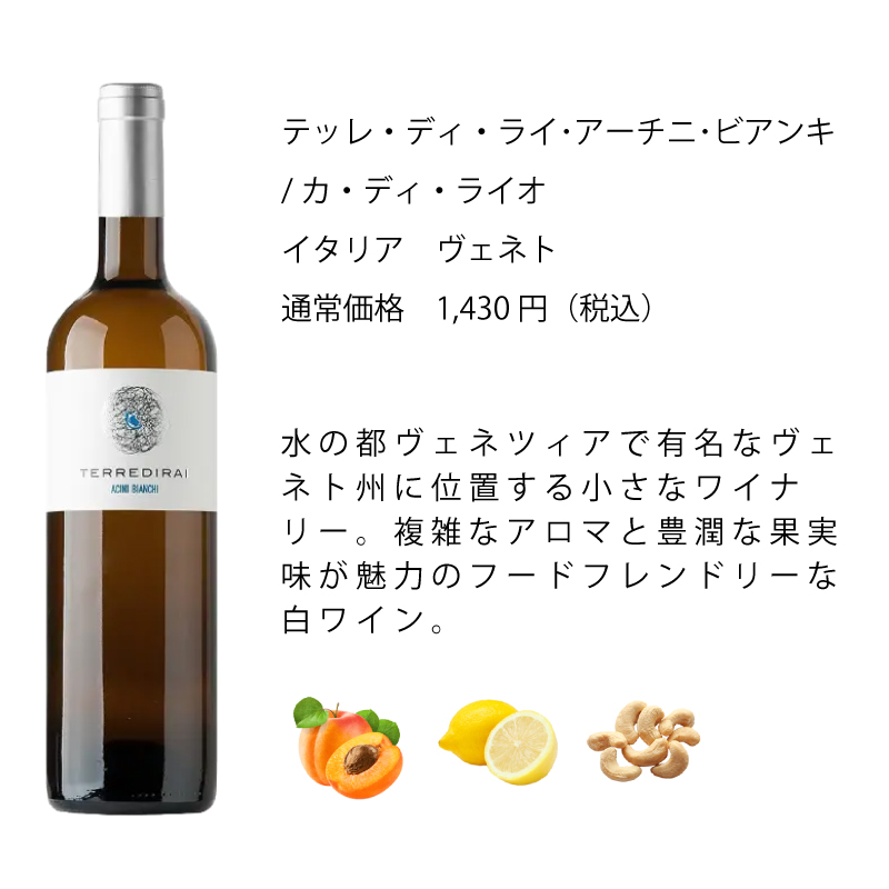 ご注文時の注意点 ・10月〜4月ご注文分は普通便でお届けします。クール便をご希望の場合は、お買い物かご内で配送方法を「クール便」へご変更ください。 ・この商品は1個口でお送りします。他の商品とご一緒にご注文いただけますが、お届け時は別梱包となります。 ・ギフトボックスならびにラッピングの承り(熨斗、リボン、メッセージカード)、紙袋もお付けできません。 ・2025年 1月22日(水) ご注文分より、環境への配慮ならびに個人情報保護の観点から、明細書ならびに領収書の商品への同封を廃止させていただいております。予めご了承ください。 ワインの説明書に関するお知らせ 弊社からお届けしておりますワインセットにつきまして、SDGsの観点から、2024年10月1日(火)以降のお届け分からワインの説明書の同梱を廃止させていただいております。 詳細はこちら≫ |