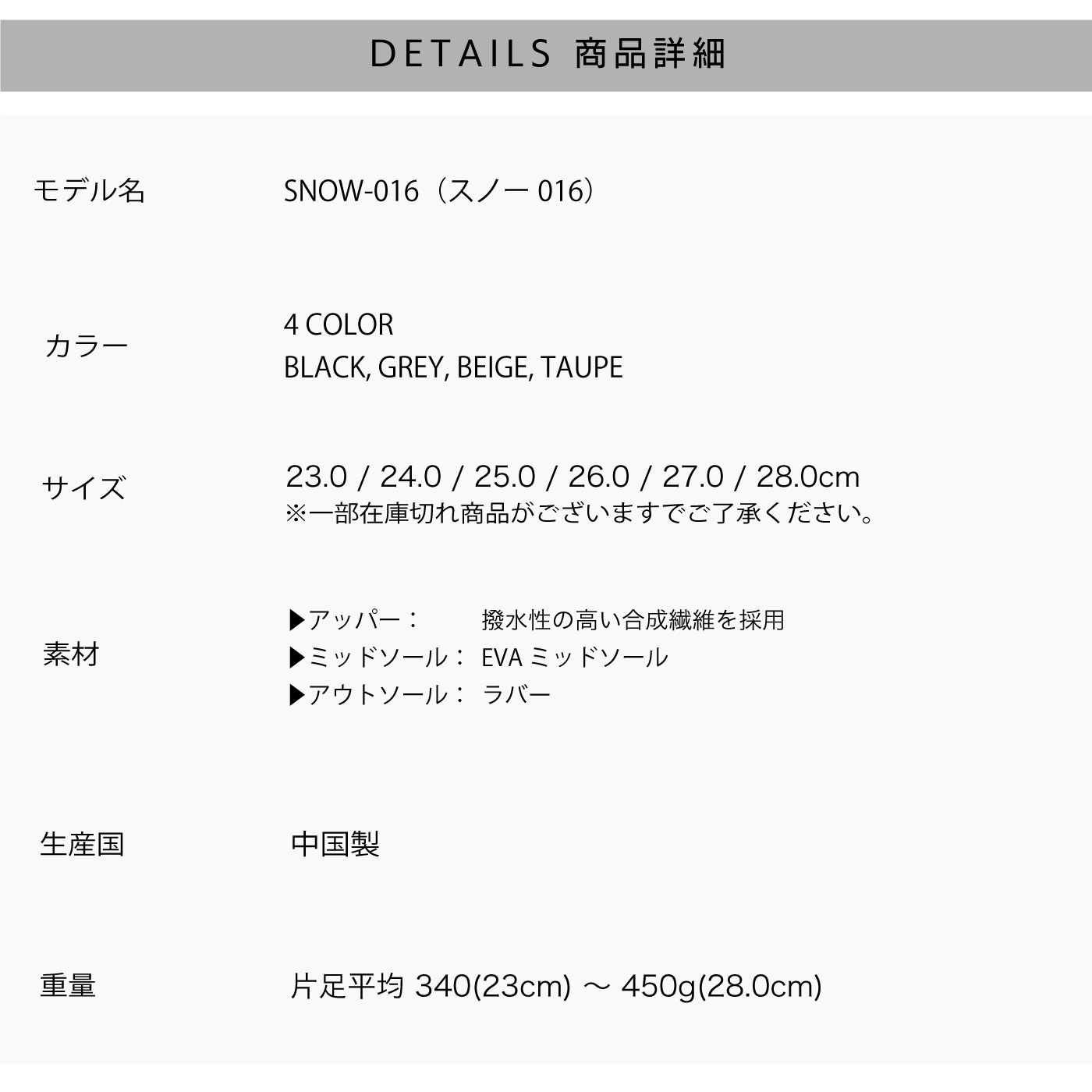 ウインターシーズンの日常履きやアウトドアなど汎用性が高く、寒い日のためにそなえておきたい万能スノーブーツです。