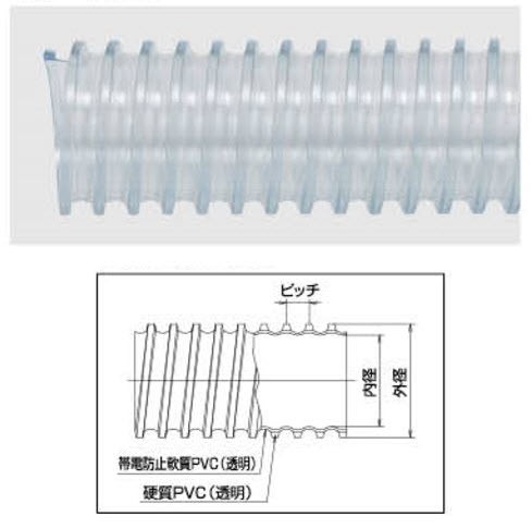 透明タイダクトホースGL-ST型【φ65 1m単位カット品】 軽量、柔軟性、静電気帯電防止効果に優れています 法人様限定
