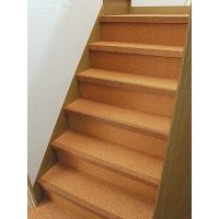 下地材や古くなった階段に重ね貼りするだけ。コルク製の部材はソフトなので
