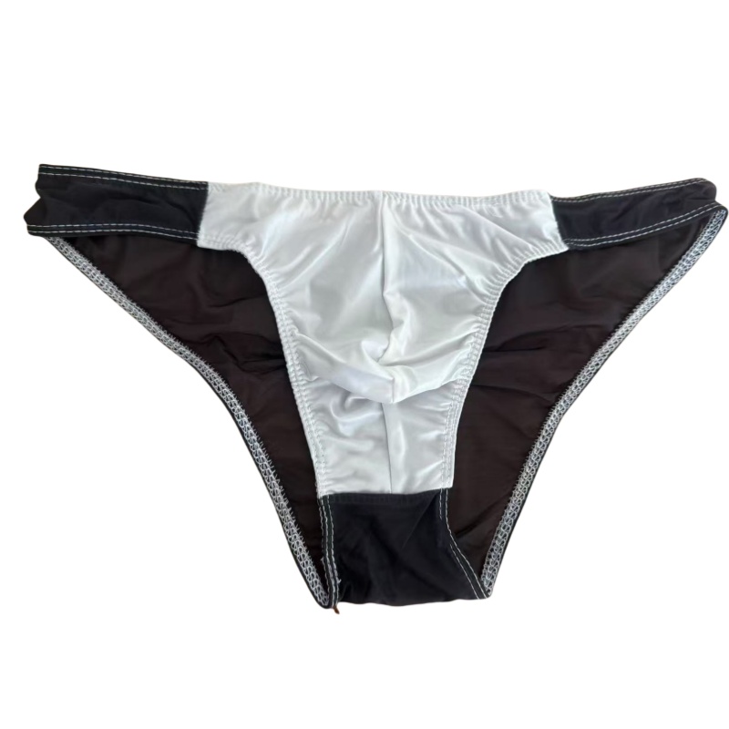 フロント部分に光沢のあるソフトで軽やかな生地を使用し、オシャレなメンズビキニです。