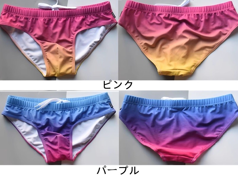 グラデーションカラーが目を惹くビキニタイプメンズ水着です。