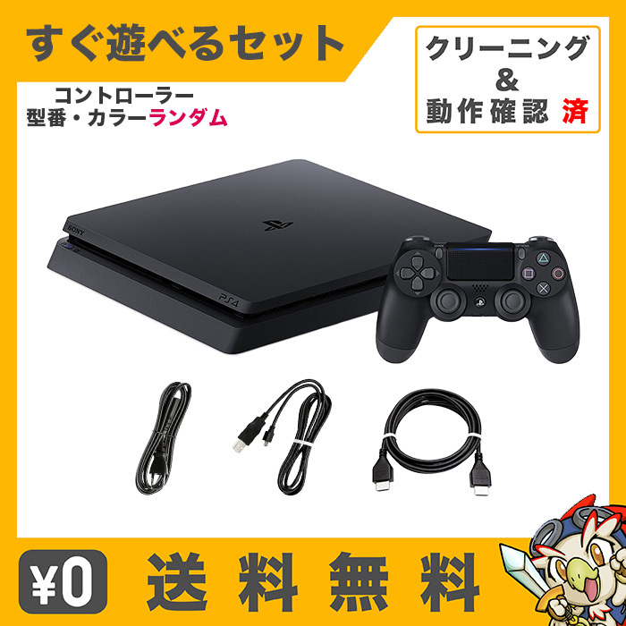 PS4 ジェット・ブラック 1TB (CUH-2100BB01) 本体 すぐ遊べるセット 純正 コントローラー ランダム 中古