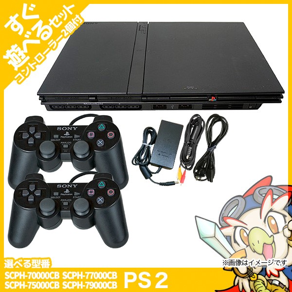 PS2 本体 中古 薄型 純正 コントローラー 2個付 すぐ遊べるセット 選べる型番 プレステ2 SCPH 70000 75000 79000