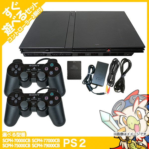 PS2 本体 純正コントローラー2個 すぐ遊べるセット 選べる型番 プレステ2 SCPH 70000〜79000 メモリーカード付【中古】
