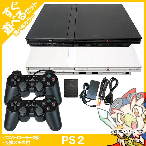 PS2 本体 純正コントローラー2個 すぐ遊べるセット プレステ2 SCPH 70000CB CW メモカ付【中古】