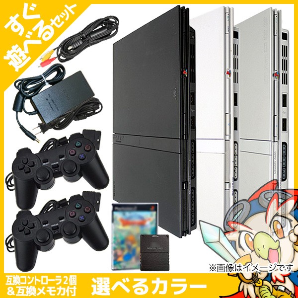 PS2 本体 互換コントローラー2個 おまけ PS2 ソフト 1本付 すぐ遊べるセット プレステ2 SCPH 75000CB CW SS メモカ付【中古】