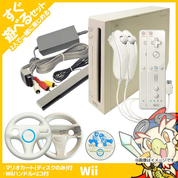 Wii ウィー 本体 すぐ遊べるセット ソフト付(マリオカートWii)ハンドル2点付 純正 中古
