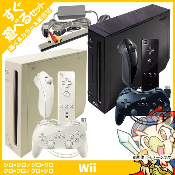 Wii ウィー 本体 すぐ遊べるセット クラシックコントローラー PRO付 選べる組み合わせ シロ クロ コントローラー ヌンチャク セット 中古