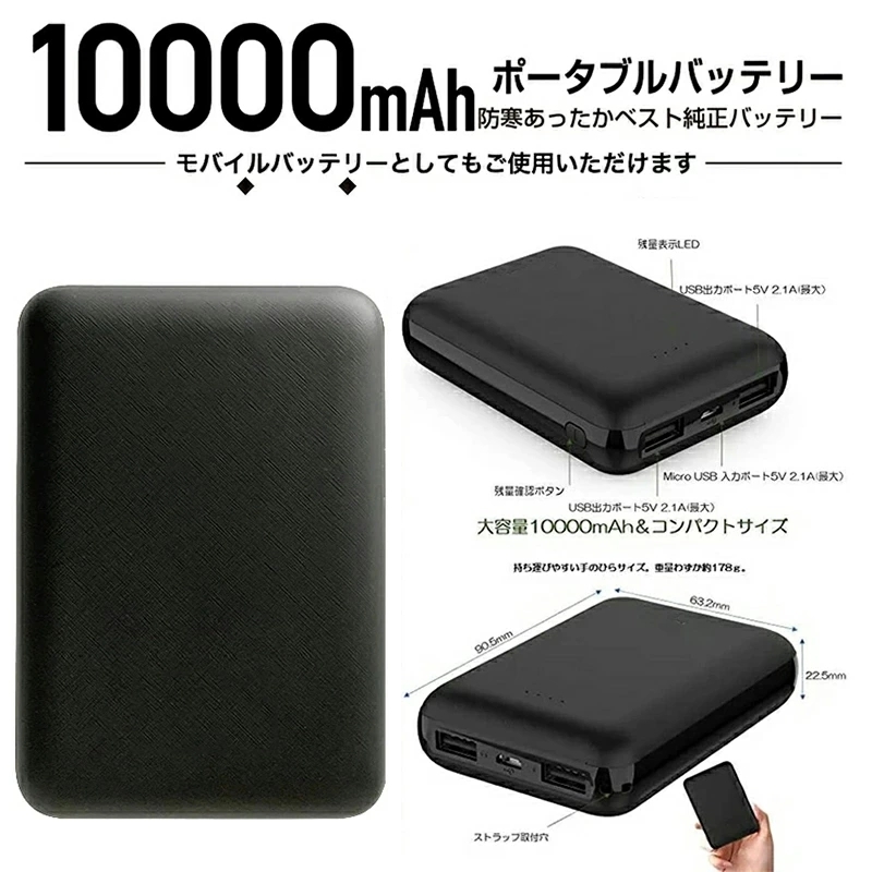 【翌日配達】空調ベスト バッテリー 10000mAh 大容量 2台同時充電 PSE 5v/2a スマホ携帯充電器 出力安定 急速充電 PSE認証済み 電熱ウェア