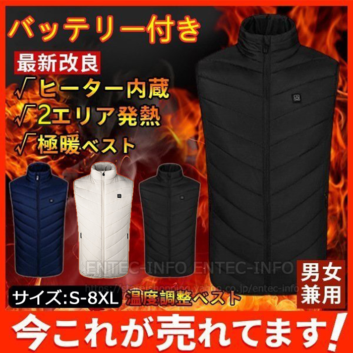 電熱ベスト バッテリー付き 電熱ジャケット ヒーターベスト 電熱ウェア 日本製繊維 ヒーター内蔵 3段温度調整 男女兼用 ヒートベスト 大きいサイズ 加熱服