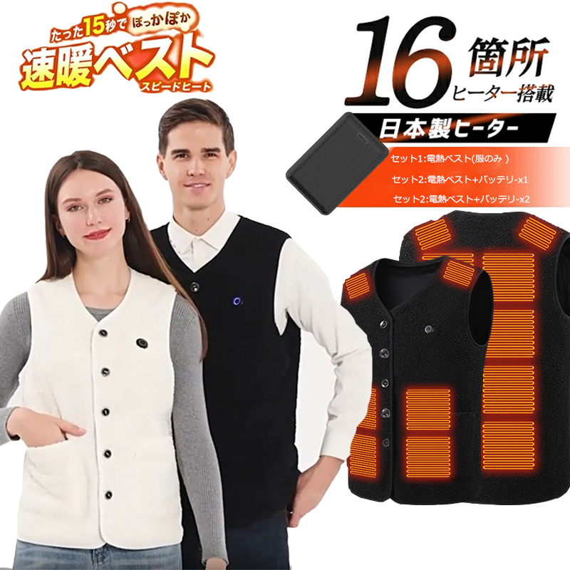 新発売 電熱ベスト 日本製 バッテリー 速暖 16箇所発熱 加熱ベスト 発熱ベスト 繊維ヒーター ベスト 16エリア発熱 USB メンズ レディース 3段階調温 水洗い可能