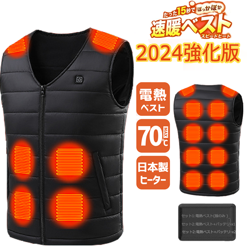 新発売 電熱ベスト 日本製 バッテリー 速暖 16箇所発熱 加熱ベスト 発熱ベスト 繊維ヒーター ベスト 16エリア発熱 USB メンズ レディース 3段階調温 水洗い可能