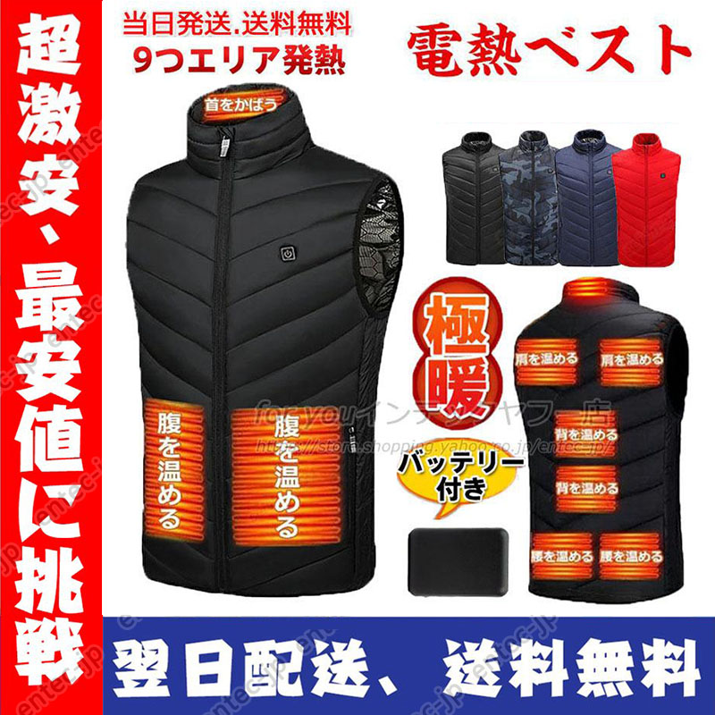 即納 電熱ウェア電熱ベスト ヒーターベスト40000mAhバッテリー付き/選択可 高品質 発熱ベスト 日本製ヒーター ベスト おすすめ 9エリア発熱 防寒着 速暖 Entec
