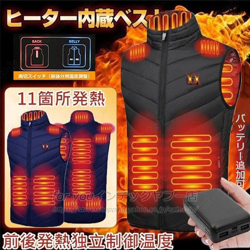 電熱ベスト 2025強化版 11箇所発熱 日本製ヒーター ヒーターベストバッテリー付き/選択可 前後独立温度設定可能 11エリア発熱 ヒートベスト 防寒対策 水洗い可