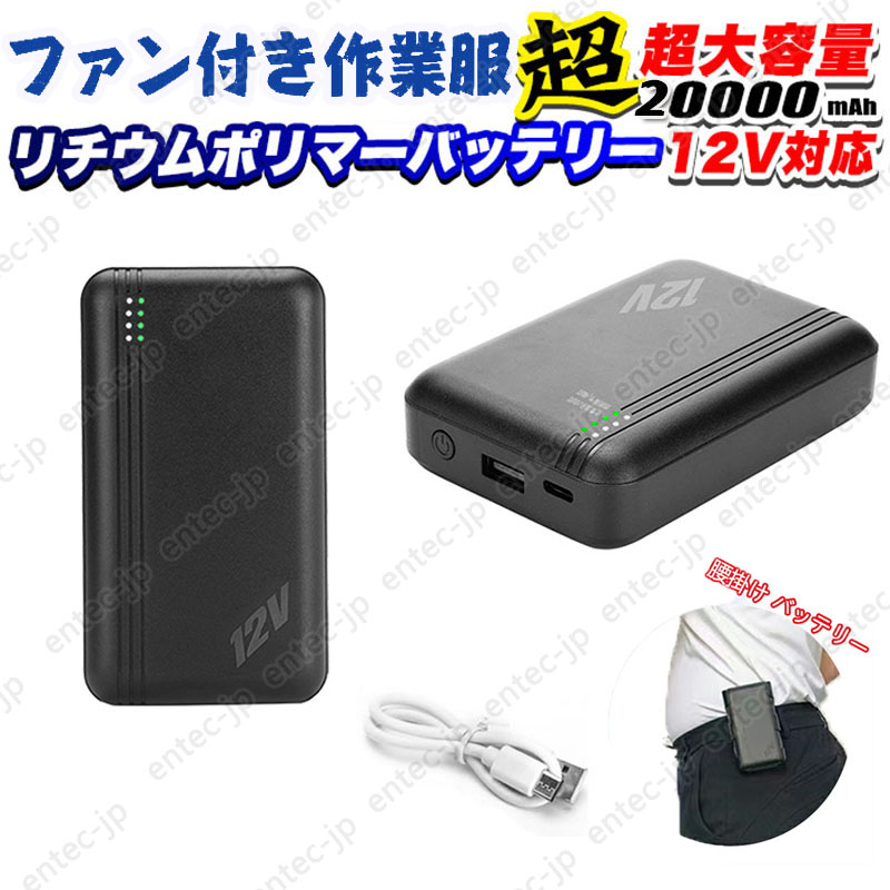 即納 モバイルバッテリー 20000mAh 大容量 12V対応 空調ベスト ファン付き作業服 空調作業服 急速充電 DC12V高出力 スマホ充電器 PSE認証済み 作業服ファン用