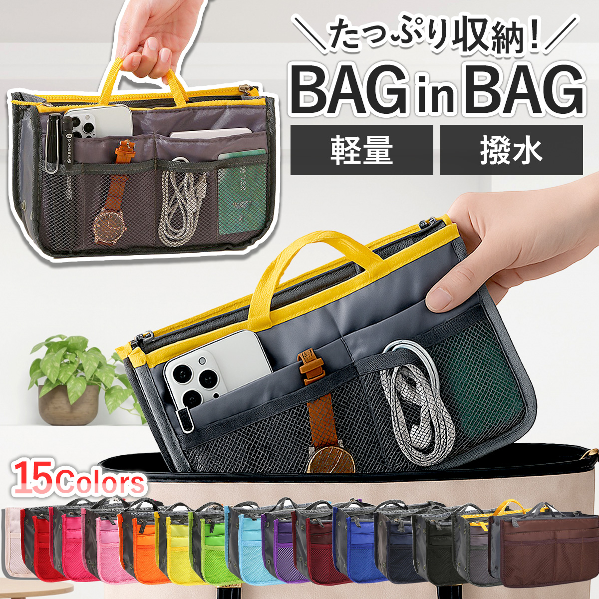 毎日のバッグ整理を快適にする薄型・軽量タイプのバッグインバッグです。