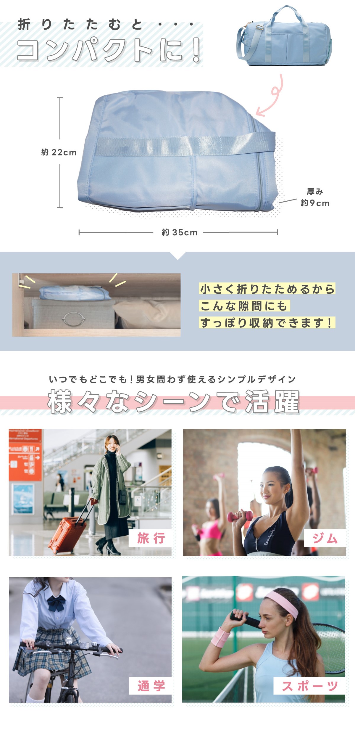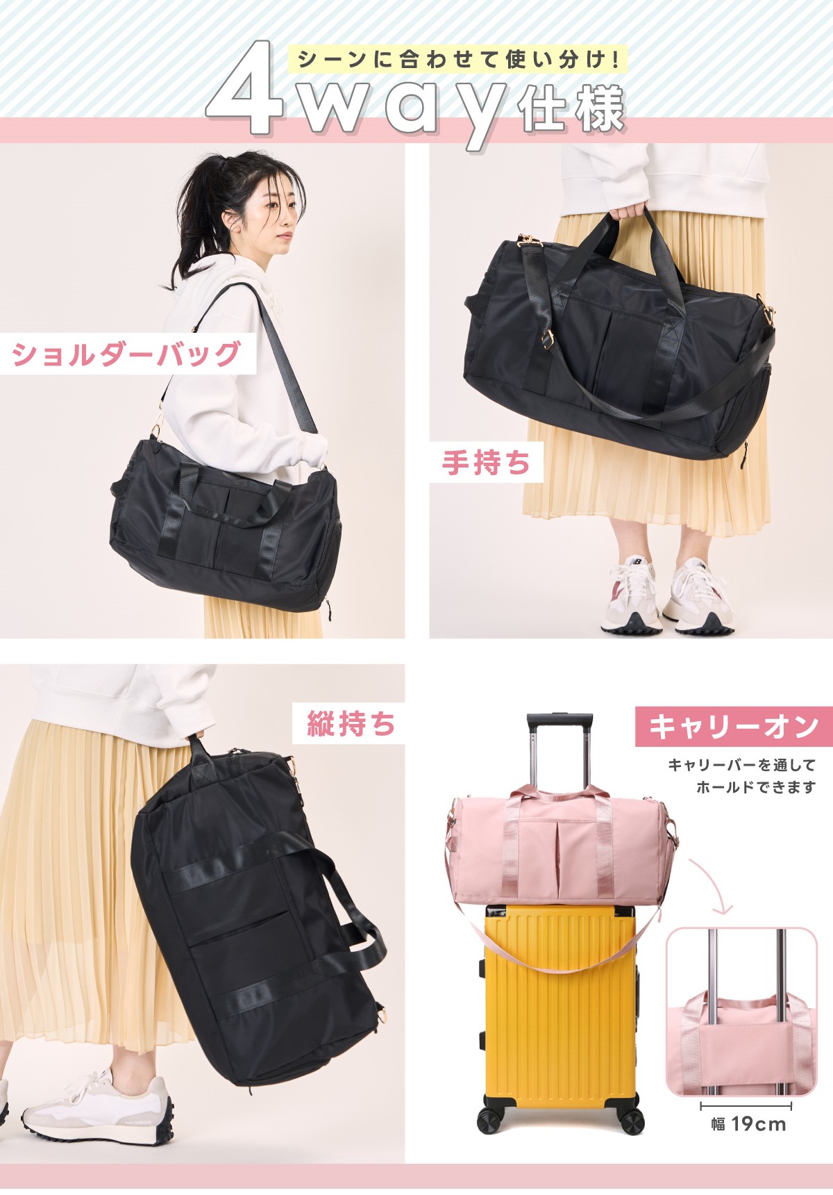 旅行バッグ レディース ボストンバッグ メンズ 靴収納 修学旅行 大容量 軽量 防水 スポーツ ジム シューズ 1泊2日 キャリーオン