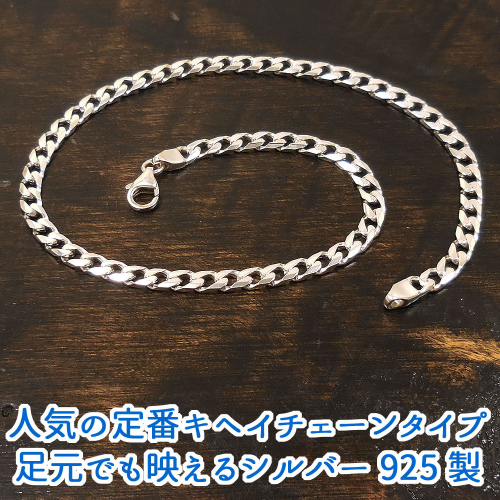 イタリア:サツルノ社の銀製メンズ・レディースチェーンアンクレット。細長いタイプの喜平チェーン。コマ同士の間が広く、軽い装着感です。