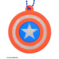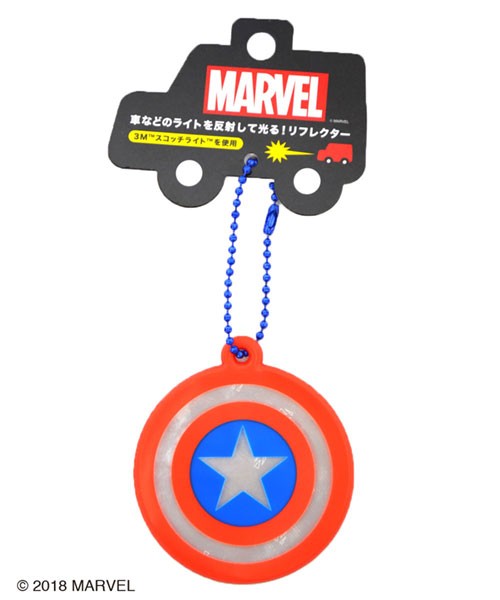 車などのライトを反射して光るリフレクター!カバンなどにつければ夜道でピカッと居場所をアピールできます!POPな色が特徴の「キャプテン・アメリカ」のシールドデザイン!
