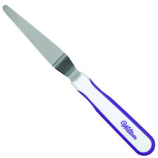 ケーキのクリームをナッペしたりフォンダンをカットするのに最適な先端が細いタイプの三角スパチュラ。