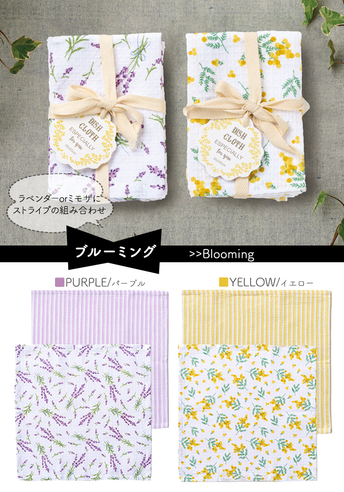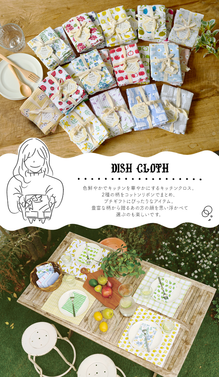 鮮やかなプリント柄と使いやすいシンプルなデザインの2枚1組のディッシュクロスに新柄が仲間入りしました。ギフトシーンに重宝するアイテムです。♪