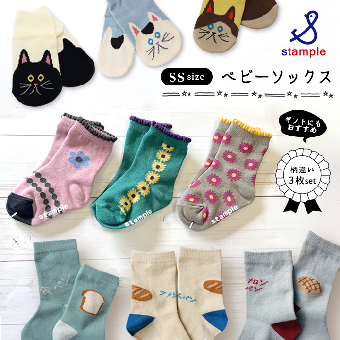 スタンプル ベビーソックス 靴下 ベビークルーソックス クルーソックス ショートソックス 3足組 SS 11〜13cm 子供 ベビー 靴下 男の子 女の子 滑り止め stample