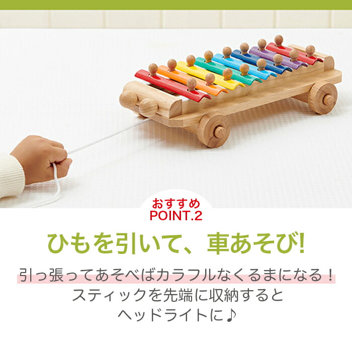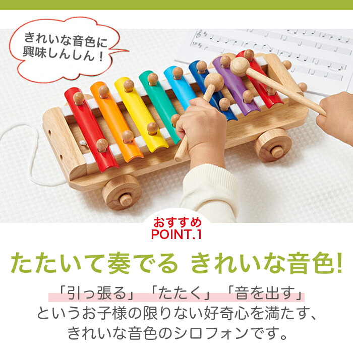「引っ張る」「たたく」「音を出す」というお子様の限りない好奇心を満たす、きれいな音色のシロフォンです。