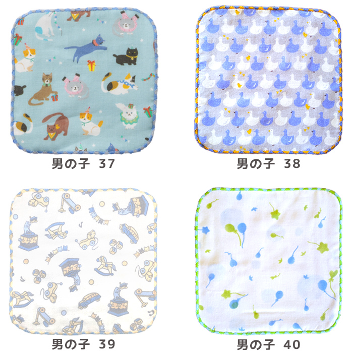 | 仕様 | ■サイズ:15cm×15cm ■素材/コットン100% ■※表:ガーゼ 裏:パイル ★パイル糸によりをかけていない無撚糸を使用しているためムースの様にやさしい素材です。 裏に名前が書けるネーム付き! |