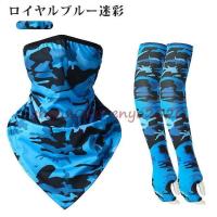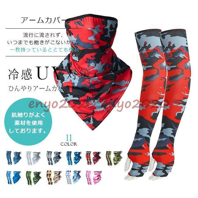 アームカバー 冷感 UVカット 2点セット フェイスマスク 指穴 スポーツ 男女兼用 接触冷感 伸縮性 涼しい 迷彩柄 おしゃれ 紫外線対策 日焼け防止 運転 作業用