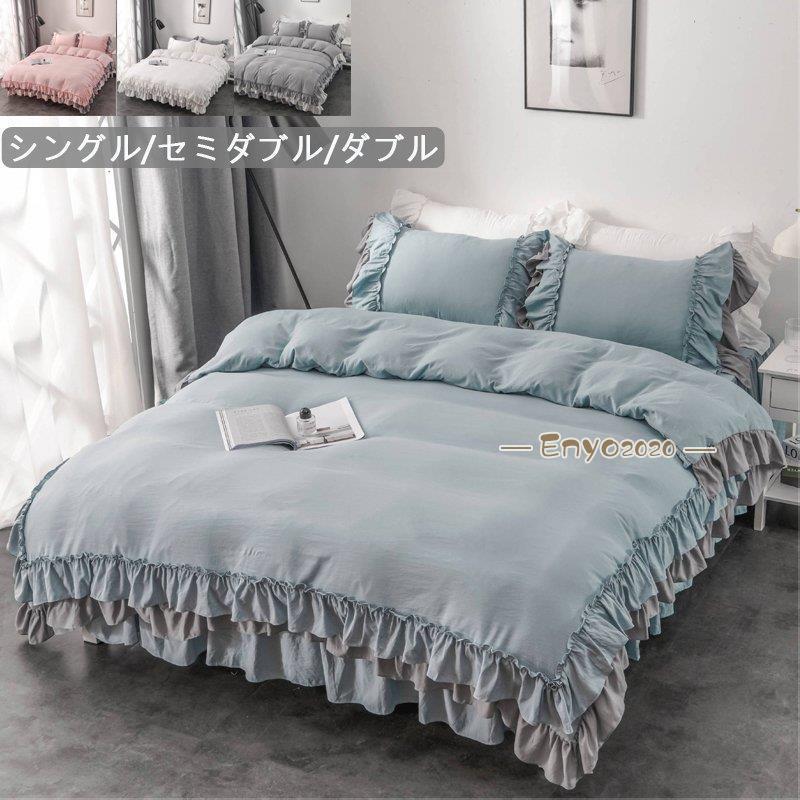 布団カバーセット シングル 掛け布団カバー 可愛い 寝具 フリル 北欧風 無地 洗える ベッドスカート ベッドカバー セミダブル ダブル 通勤