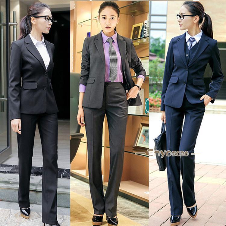 リクルートスーツ 女性 スーツ レディース パンツスーツ 長袖 2点セット 通勤 ビジネス 就活 面接 大きいサイズ ブラック グレー ネイビー