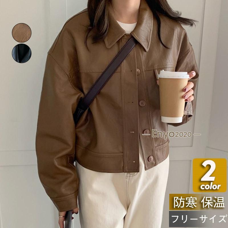 革ジャン レディース レザージャケット ライダースジャケット アウター 羽織 ゆったり カジュアル 開襟 着痩 韓国風 防風 春秋 高級感 おしゃれ