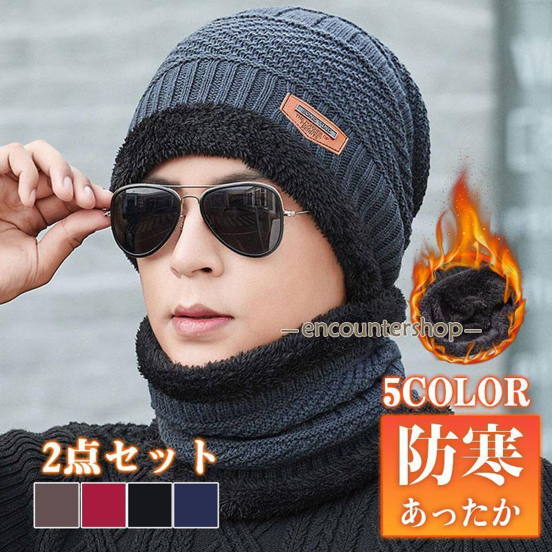 裏起毛 2点セット ネックウォーマー 帽子 防寒 冬 暖かい メンズ レディース スヌード ニット帽 保温 スキーウェア 防風 バイク 自転車 通勤