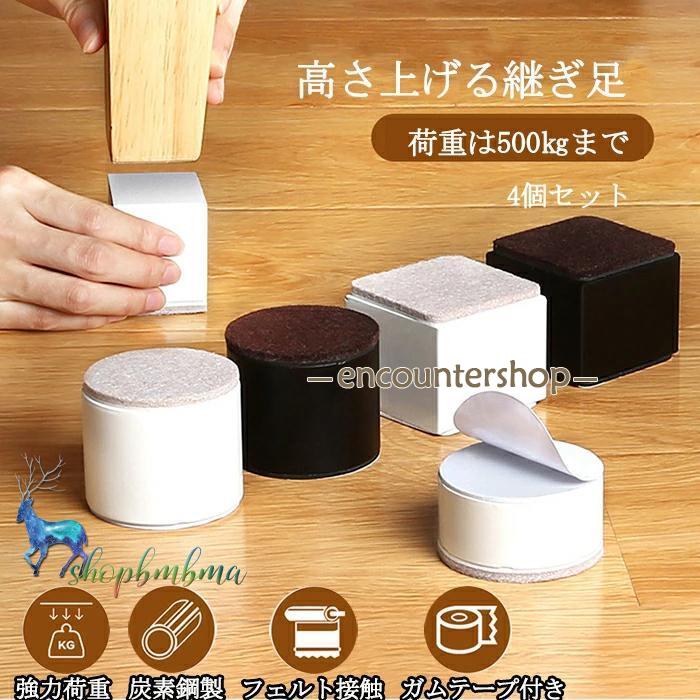 継ぎ脚 高脚 テーブルベッドの高さ調節 継脚 4個セット ブラック ホワイト ブラウン 円形 方形 炭素鋼 強力荷重 継足 長脚 脚長 ベッド 脚高 シンプル 高さ調節脚 粘着式 継足し 継ぎ足 テーブル脚台 高さ上げる 机 冷蔵庫 家具 掃除便利 40*52mm 60*32mm 60*52mm