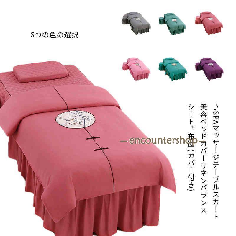 布団付き 4点 マッサージベッドカバー ベッドスカート フリル付き マッサージベッド カバー スクエア ラウンド エステベッド マッサージベッド スカ