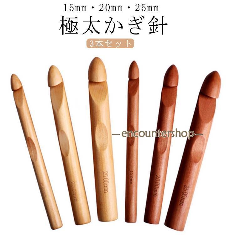 DIY 3本セット かぎ針 毛糸 木の色 編み物キット 手編み道具 工具 編み物 手芸 極太かぎ針 木製毛糸針 初心者でも使いやすい 編み針 裁縫/セ