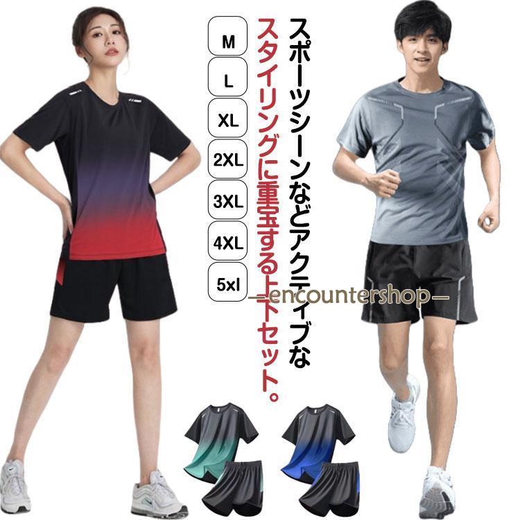 ランニングウェア レディース メンズ 上下セット 春 夏 秋 半袖Tシャツ ハーフパンツ 2点セット スポーツウェア 半袖 tシャツ 短パン トレーニ