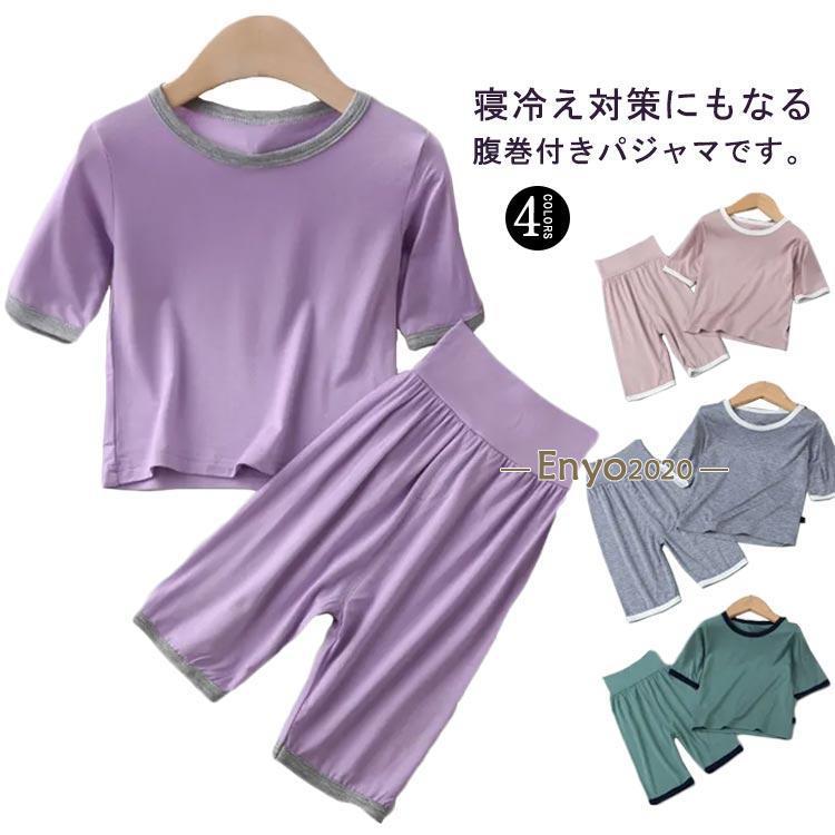 キッズ パジャマ 半袖 上下セット 腹巻き付き 赤ちゃん ベビー ルームウェア 部屋着 薄手 ストレッチ 長ズボン ハイウエスト 男の子 女の子 寝冷