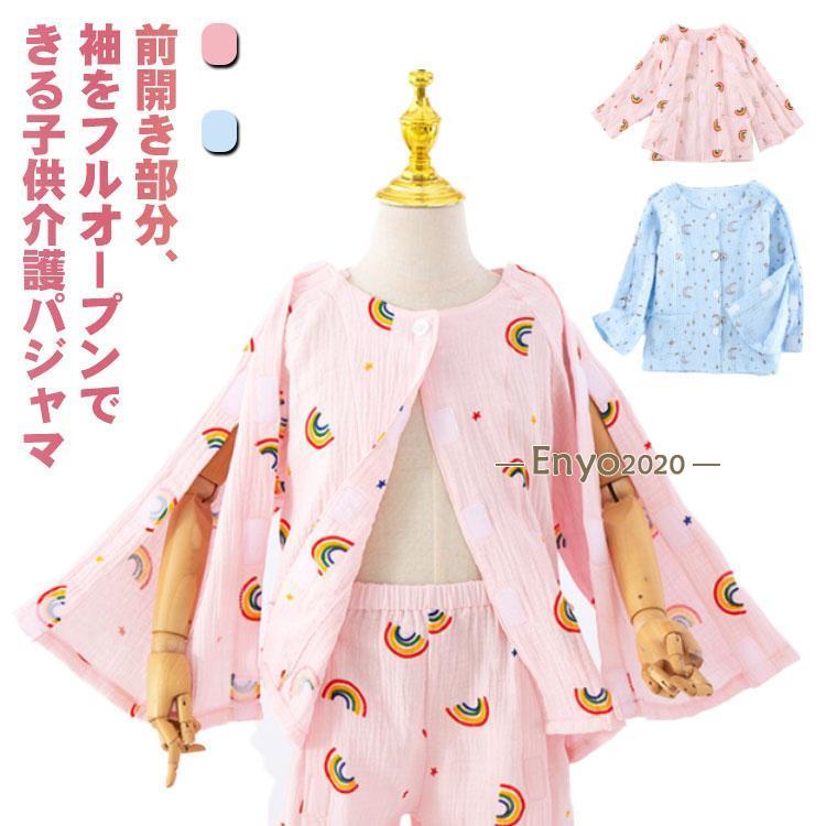 子供 介護パジャマ トップス キッズ 介護用パジャマ 長袖 綿 ダブルガーゼ 介護ねまき 寝巻 女の子 男の子 介護衣料 フルオープン 前開き 全開き