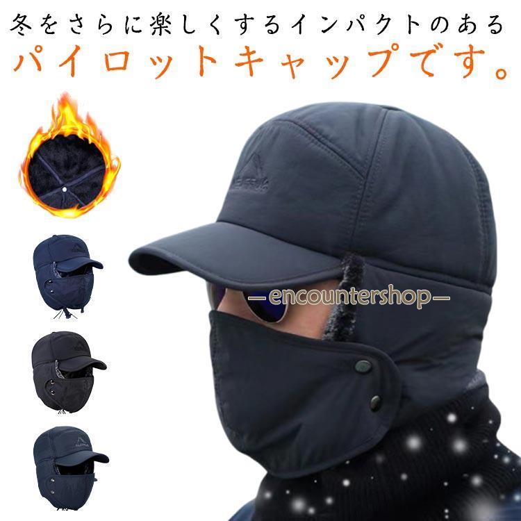 フライトキャップ パイロットキャップ 耳当て付き 防寒帽子 マスク付き パイロット帽 フェイクファー 帽子 もふもふ 飛行帽 裹起毛 ファー 防寒
